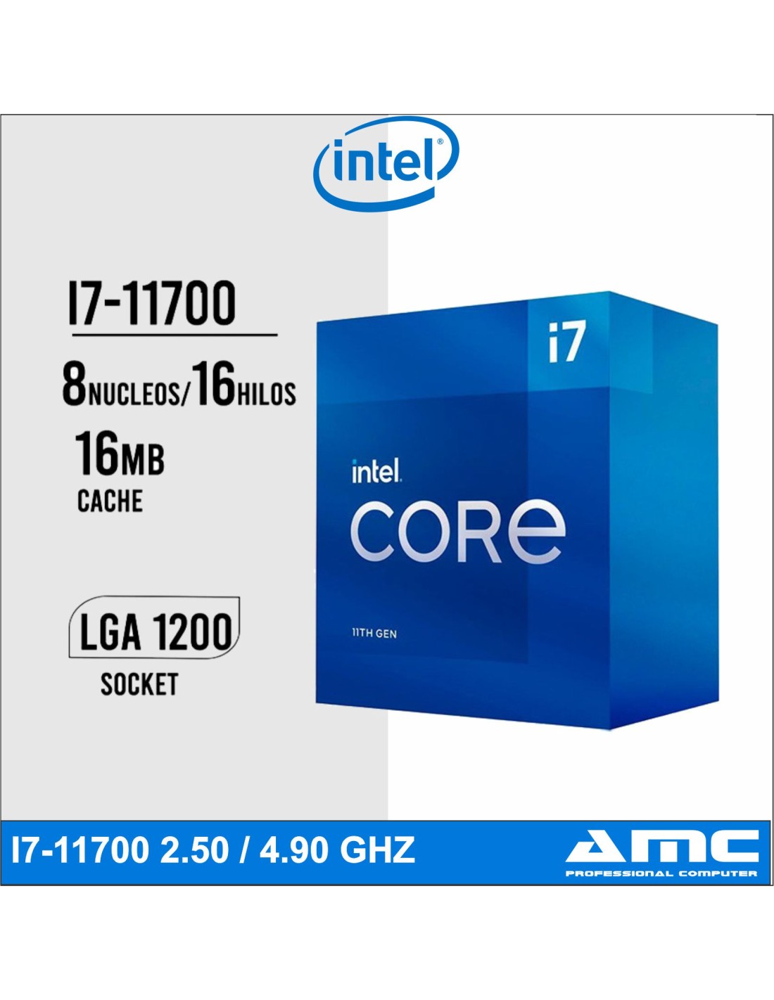 Intel Core i7-11700 2.50 / 4.90 GHz, 16 MB Caché L3, LGA1200, 65W, 14 nm |